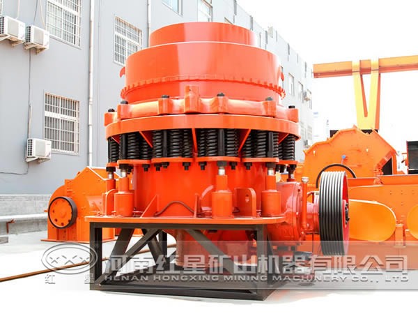 圓錐破原本有一個(gè)缺點(diǎn),即可能由于物料過大是的排料停止,紅星牌圓錐破由于采用了“彈簧保險(xiǎn)系統(tǒng)”,當(dāng)有異物卡在排礦口使用清腔系統(tǒng),使排礦繼續(xù)增大,使異物排出圓錐破碎機(jī)破碎腔。