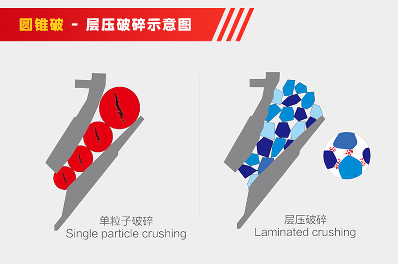 以目前在中細(xì)碎領(lǐng)域大顯身手的圓錐破來說,它的產(chǎn)品粒度較均勻、能源消耗少。但在它出場的初期并不是那么優(yōu)秀,在生產(chǎn)中存在很多缺點(diǎn),如成品針片狀含量較多、粒形不夠好。后來,針對這些問題,業(yè)界提出了層壓破碎原理,并依此進(jìn)行了工藝上的改進(jìn)。