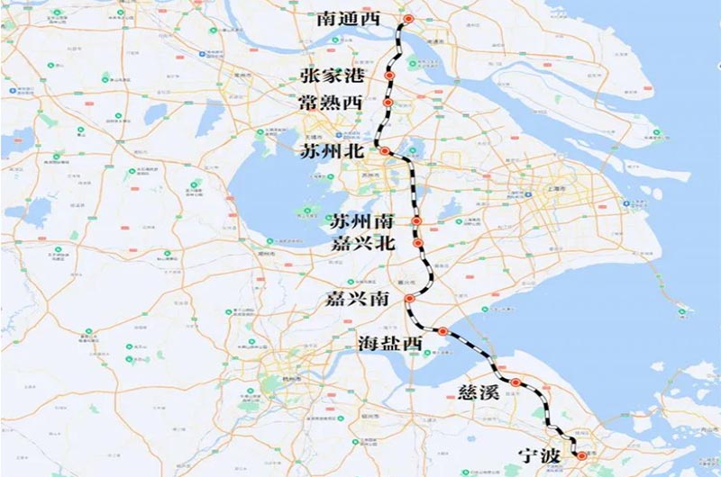 通蘇嘉甬鐵路正線運(yùn)營長度310.113公里,其中新建線路300.638公里,設(shè)計(jì)時(shí)速350公里,全線估算投資1080.9億元。其中,浙江段新建線路長度165.914公里,跨海大橋長29.162公里。通蘇嘉甬鐵路設(shè)計(jì)時(shí)速350公里,預(yù)計(jì)工期5年。全線設(shè)南通西、張家港、常熟西、蘇州北、蘇州南、嘉善北、嘉興南、海鹽、慈溪、莊橋等10座車站。